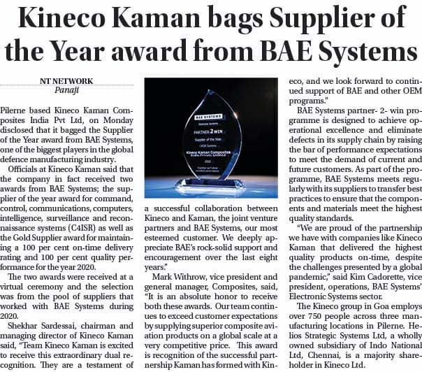 BAE Systems honors Kineco Kaman with Gold Supplier and C4ISR Supplier of the Year award