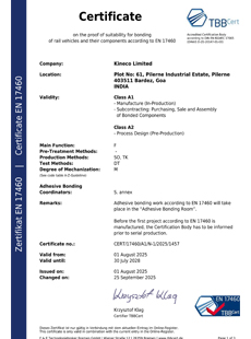 EN 17460 Adhesive Bonding Certification (Railway Division)